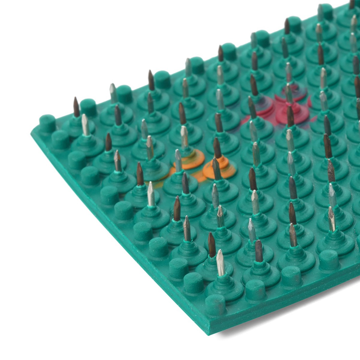 Аппликатор представляет собой эластичную резиновую пластину c закрепленными на ней иглами из необходимых для организма металлов: цинка, меди, железа, никеля и серебра.
