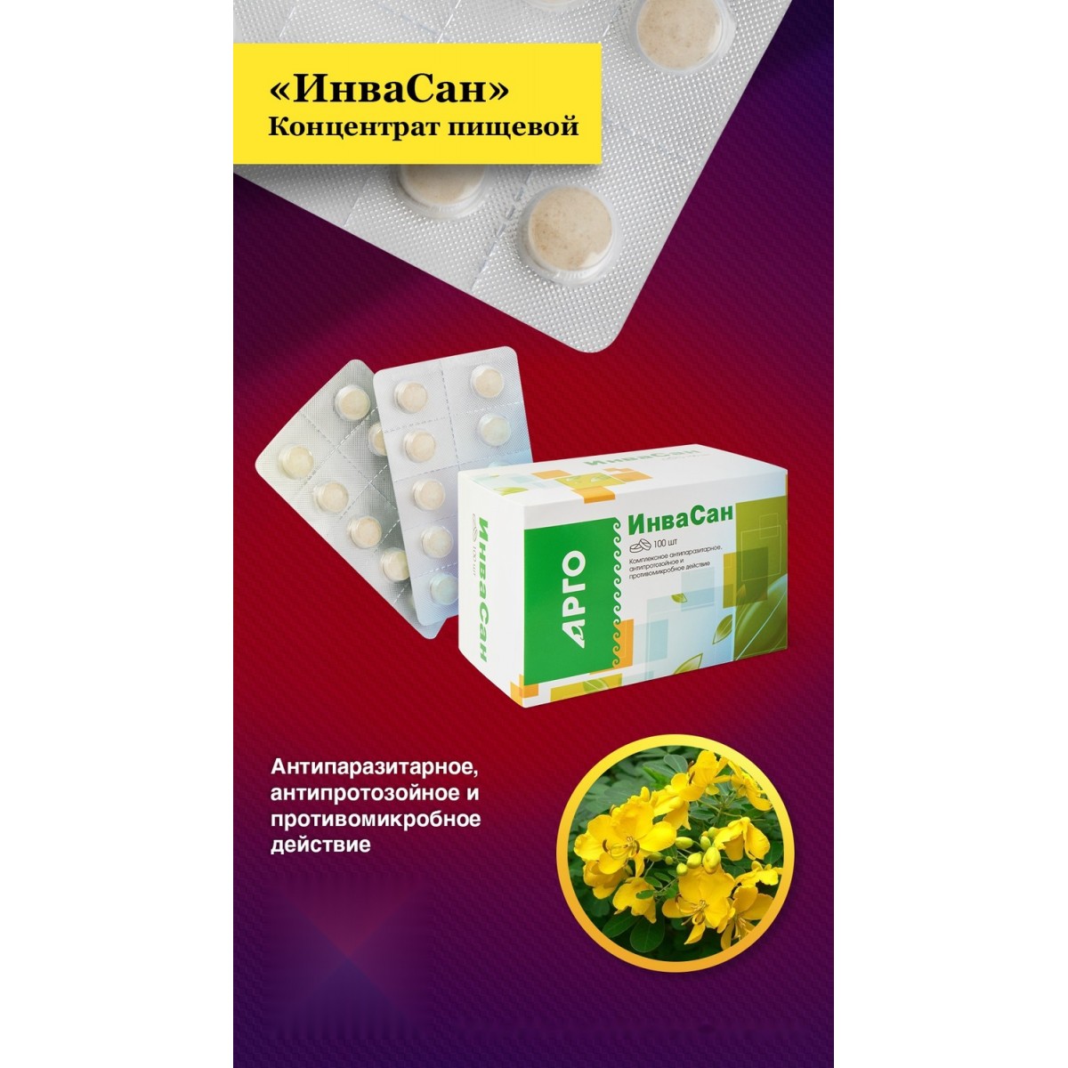 Конфеты таблетированные с растительными экстрактами ИнваСан воздействует как на плоских, так и на круглых гельминтов, обеспечивает их эффективное удаление из всех отделов желудочно-кишечного тракта, в том числе, желчного пузыря и желчевыводящих путей, стимулирует местный иммунитет, восстанавливает пищеварение и функцию печени.