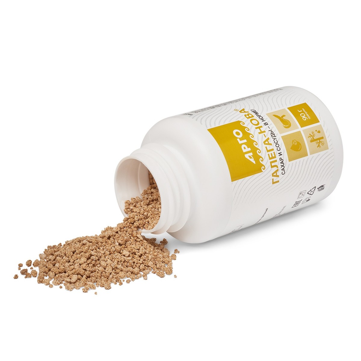 Биологически активная добавка к пище «ГалегаНова» обладает комплексным воздействием на состояние сосудистой системы, снижает уровень глюкозы и холестерина в крови, проявляет антиатеросклеротический, сосудоукрепляющий эффекты, нормализует водносолевой, углеводный, жировой обмен, что позволяет применять этот парафармацевтик при ряде форм течения и осложнений сахарного диабета. Комплекс экстрактов корня лопуха, плодов шиповника, моркови также обеспечивает противовоспалительное, жаропонижающее, слабительное, мочегонное действие.