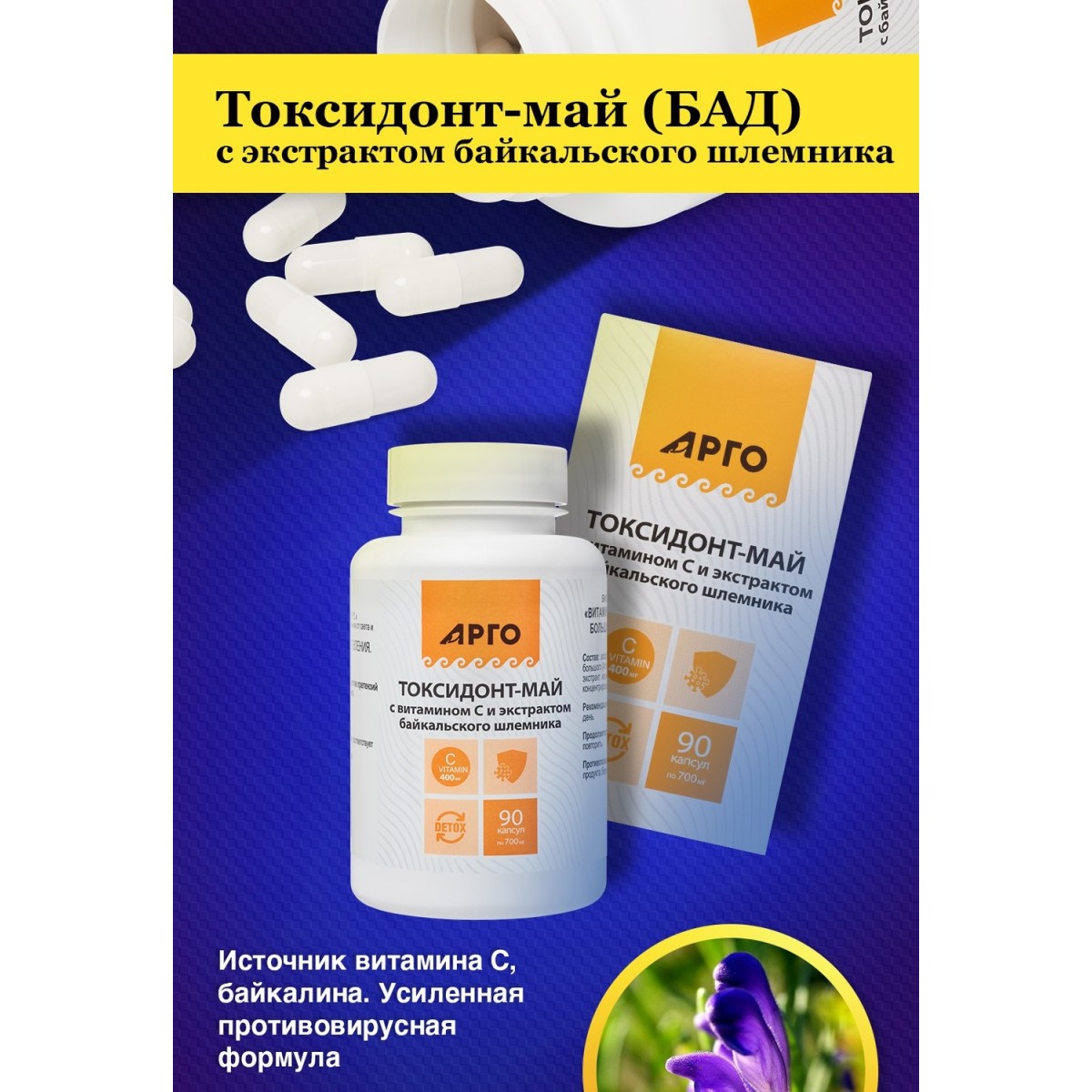 Взрослым – по 1–2 капсулы Токсидонт-май с экстрактом байкальского шлемника 1 раз в день после еды. При простудных заболеваниях, ОРВИ, гриппе рекомендуется принимать по 2 капсулы 1 раз в день после еды.
